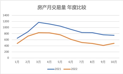 今年以来的每月成交量,与2021年的具体数字对比: