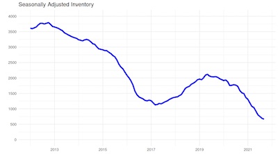 9月底挂牌数仅1124个,比一年前9月底的2389个,少了53%,和8月底(1120)接近,是严重的供需失衡。