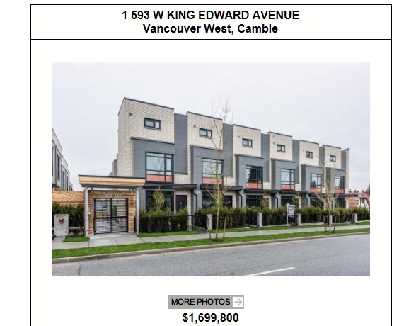 其实,这价位的联排别墅在温西也有,比如位于Marpole和Shaughnessy之间的这一套,居然有2063尺的面积和4个房间。而且还有私家车库和豪华装修,和独立屋区别真的也不大了,而且,它在温西~